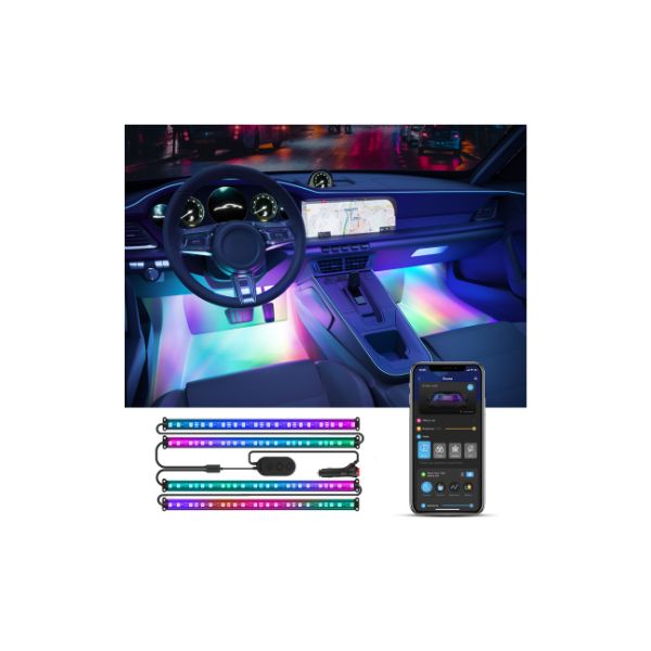 • Εφέ Φωτισμού Ουράνιου Τόξου: Τα φώτα αυτοκινήτου Govee με τμηματοποιημένο έλεγχο χρωμάτων RGBIC επιτρέπουν την ταυτόχρονη προβολή πολλών χρωμάτων, προσφέροντας ένα νέο επίπεδο εξατομικευμένου διακοσμητικού φωτισμού στο όχημά σας.