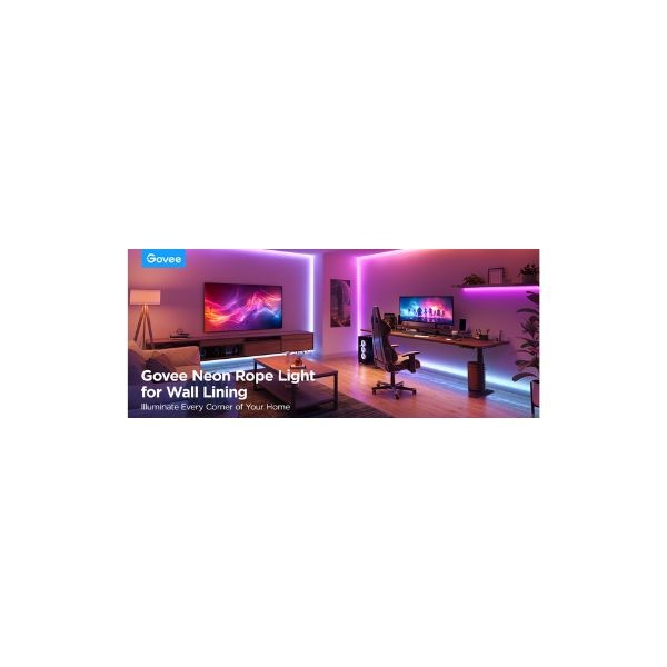 Αναβαθμίστε τον χώρο σας με τα Govee Neon Rope Lights για επένδυση τοίχων – την κορυφή του εντυπωσιακού φωτισμού! Με επικάλυψη από εκλεπτυσμένη σιλικόνη και φωτεινή επιφάνεια 22,5 mm, προσφέρουν ομοιόμορφο και απαλό φωτισμό σε σοβατεπιά, γωνίες δωματίων και οροφές. Με 99+ προεπιλεγμένες σκηνές, ρυθμιζόμενο μήκος, εύκολη εγκατάσταση και έξυπνο έλεγχο μέσω Govee Home, Alexa, Google Assistant και συστημάτων τρίτων μέσω Matter.